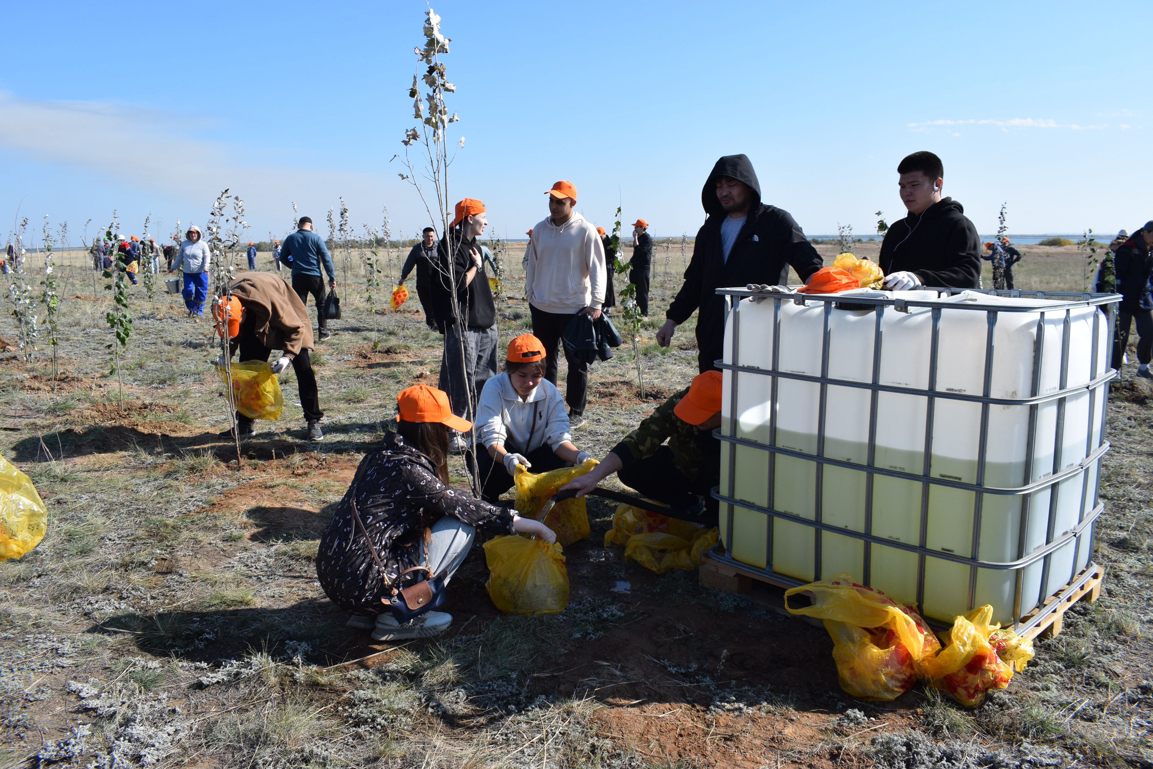 Айтпақшы, 1 мың түп терек егілген алаңқайдың арғы жағында бұрынғы жылдары отырғызылған қарағаш пен бұталар көрініп тұрған-ды.