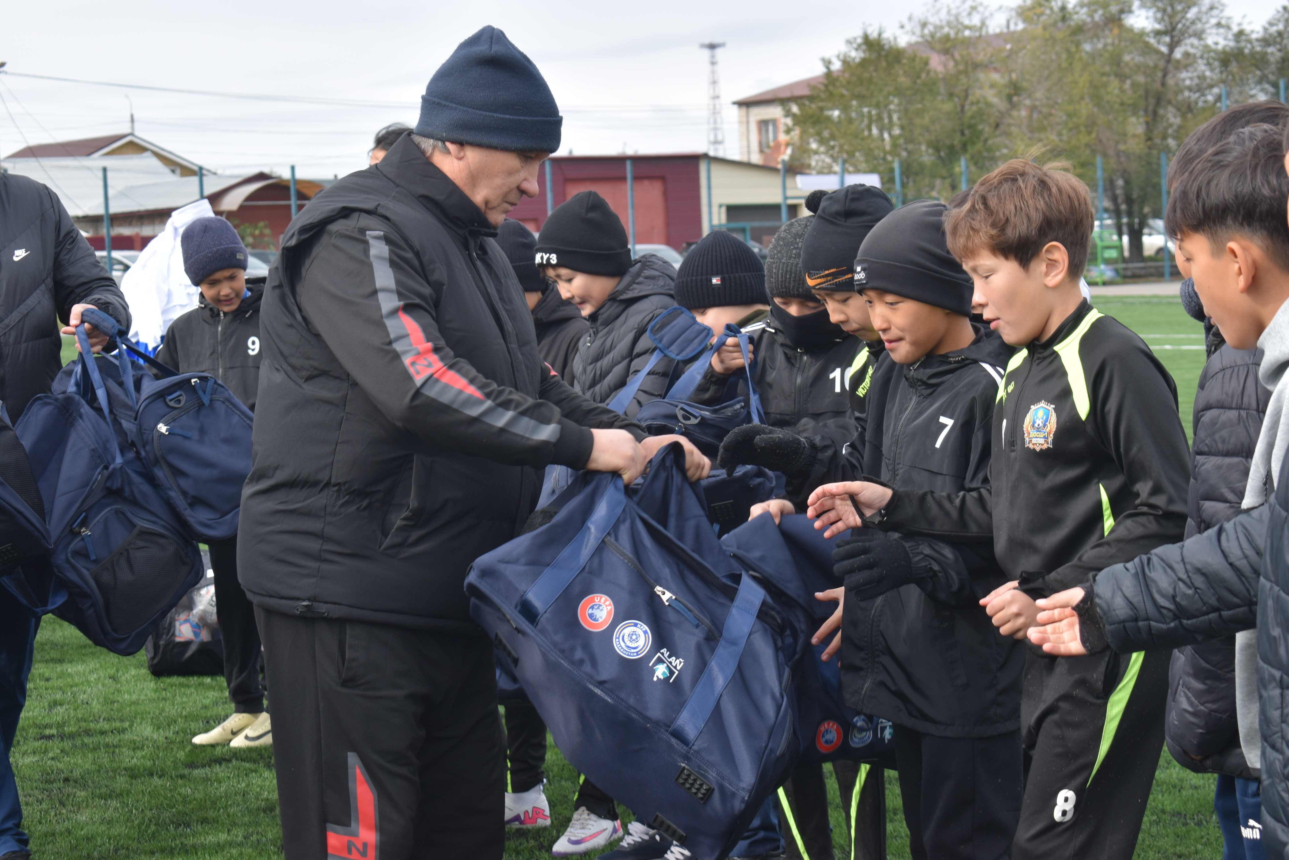 – Сыйлыққа қуанып тұрмын. Ішінде футболшы формасы, өзге де керек-жарақ бар екен. Өзімнің футболмен шұғылданып жүргеніме 7 жыл болды. Бапкерім – Юрий Корзаков. Мына жаңартылған алаңда доп тебу тамаша, шеберлік шыңдауға жағдай жасалған, – дейді 12 жастағы Асанәли Қонақбай жүзі бал-бұл жайнап.
