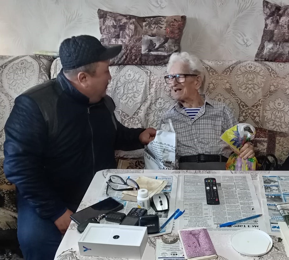 Жалғызілікті қария Виктор Сакин де кеңес заманында бірқатар қалада болып, әр түрлі жұмыстар атқарыпты. Қартайған шағында жападан-жалғыз қалған қарттың керек-жарағын әлеуметтік қызметкер жеткізіп беріп тұратын көрінеді. Осылайша, мемлекеттің қамқорлығын көріп отырған Виктор Семенович те жасалған сый-сияпатқа ризашылық білдірді.