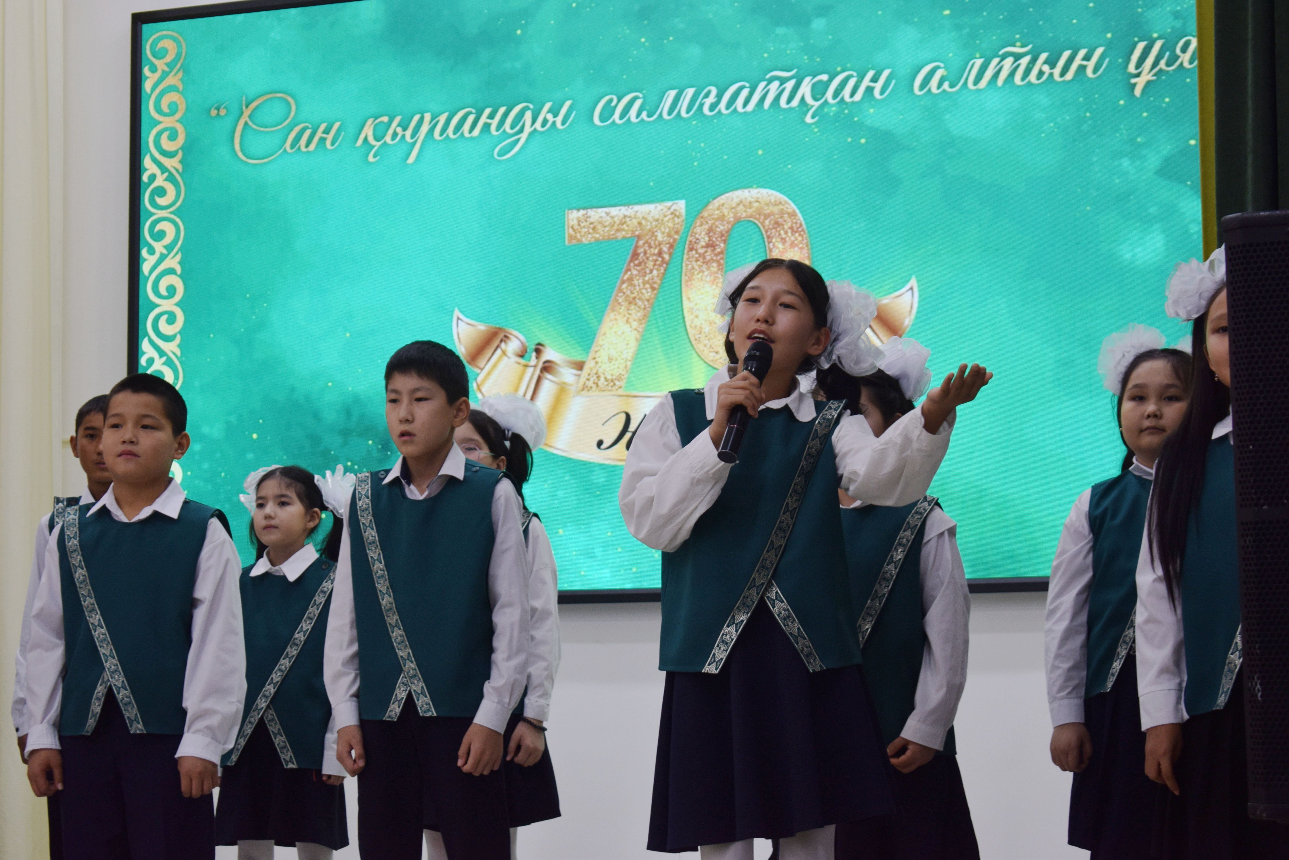 Аян Уахитұлы мектептің 70 жылдық мерейтойымен ұжымды құттықтап, ұстаздар қауымына зор алғыс білдірді. Салтанат марапаттау рәсімімен жалғасты.