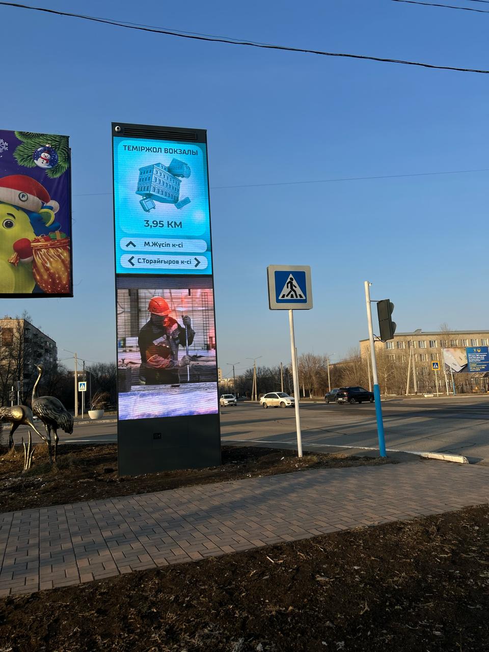 Қаламызда алты нүктеде тік LED-экрандар орнатылды. Бұл – ақпараттандыру және қауіпсіздікті қамтамасыз ету тұрғысынан маңызды құрал. Ол арқылы жүргізушілер назарына жол апаттары, жөндеу жұмыстары, жолда жүру ережелері, ауа температурасы туралы жедел ақпараттар ұсынылып отырады. Сондай-ақ, дисплейлер әлеуметтік және коммерциялық жарнамаларды беруге де қолайлы.