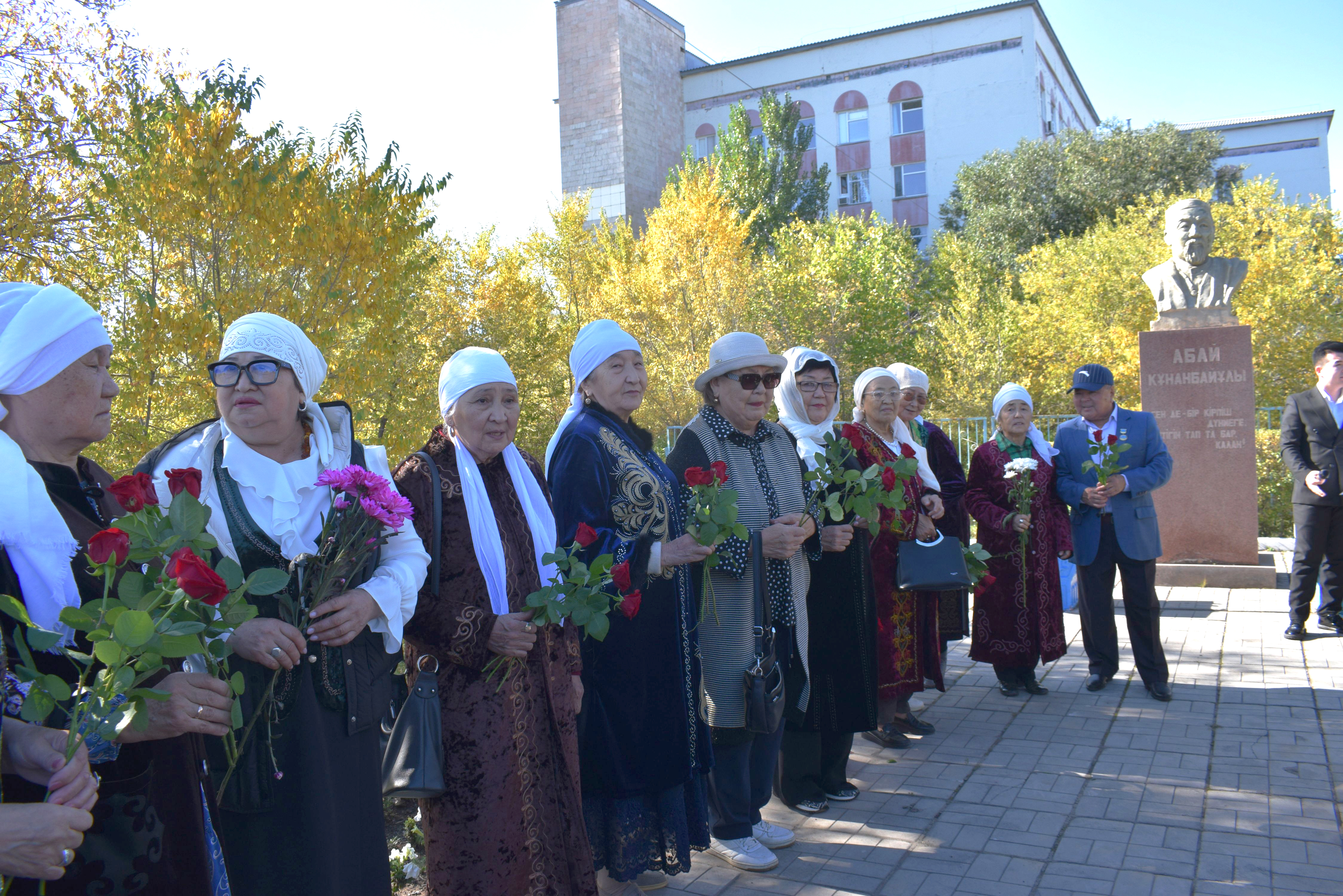 Жители города возложили цветы мемориалу Абая Кунанбаева в честь празднования 180-летнего юбилея со дня рождения великого казахского поэта и просветителя.
