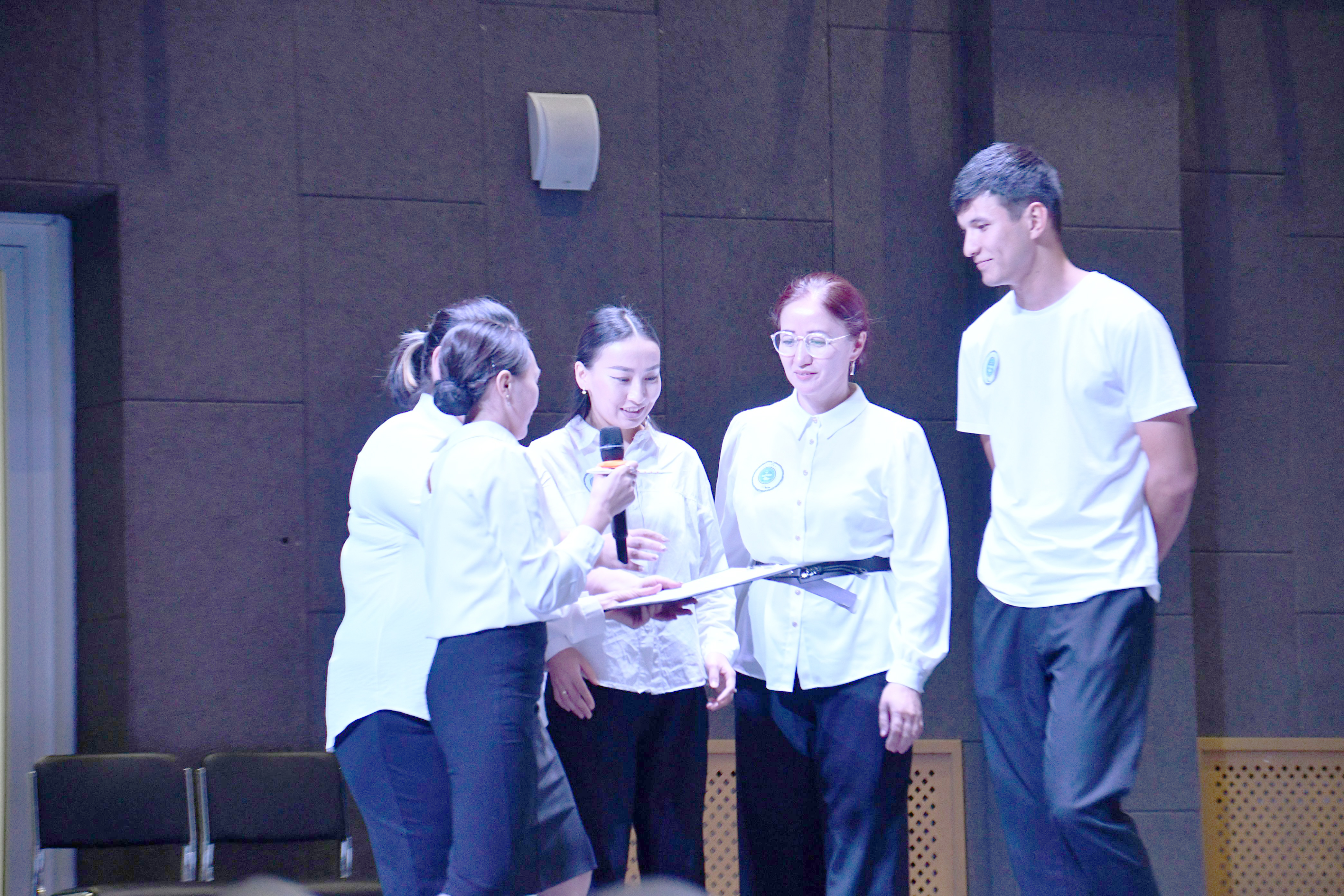 Затем им нужно было составить рассказ на казахском языке, опираясь на картины, показанные на экране; вспомнить авторов знаменитых отрывков и цитат, а также сыграть в игру «Одна буква — тысяча вариантов», где игрокам предстояло на скорость перечислить как можно больше слов на заданную букву.