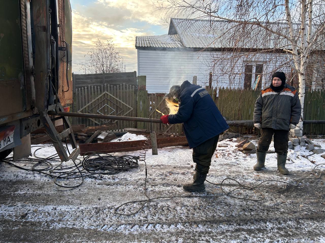 На 1 Южном проезде — плановая операция: замена подземного компенсатора. Бригада из шести человек — сантехников, резчиков и сварщиков — уже приступила к делу. Газоэлектросварщик Молдаш Боранбаев отлучился буквально на несколько минут, чтобы рассказать свою историю.