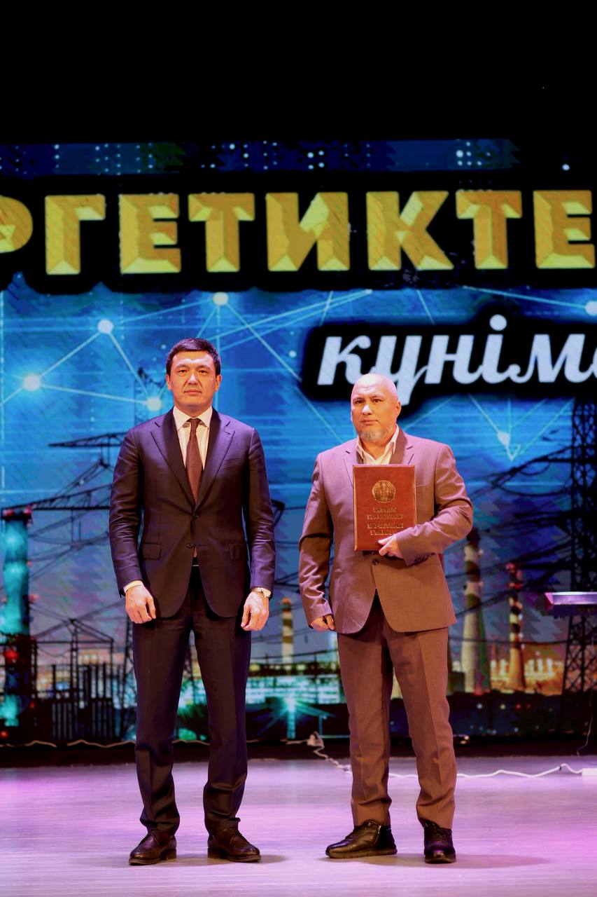 Продолжением праздничного вечера стала церемония награждения лучших представителей отрасли. Почетными грамотами акима Павлодарской области были награждены заместитель главного инженера ООО «Горэлектросеть» Куат Досымбаев и заместитель начальника цеха АО «Экибастузская ГРЭС-2» Кайрат Курмангалинов. Благодарственное письмо от акима области вручили Бекижану Еркебаеву, машинисту котельно-турбинного цеха АО «Экибастузская ГРЭС-2».