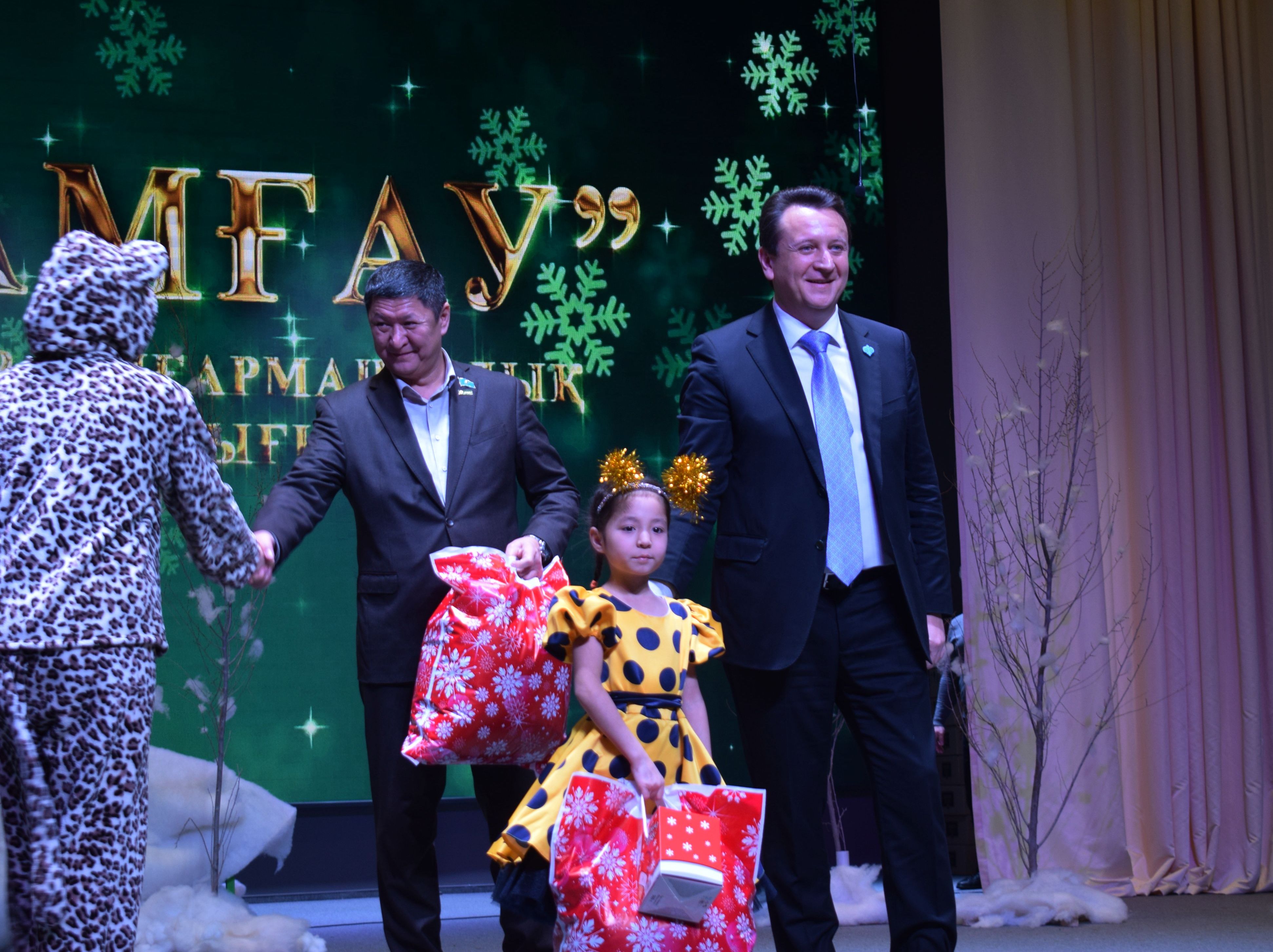 Церемония вручения подарков состоялась в Детском творческом центре «Самғау». Для ребят подготовили праздничную программу: на сцене развернулась новогодняя сказка с участием Деда Мороза, Снегурочки, лесных жителей и школьников. Тёплая атмосфера, улыбки и искренние эмоции детей стали главным украшением праздника.