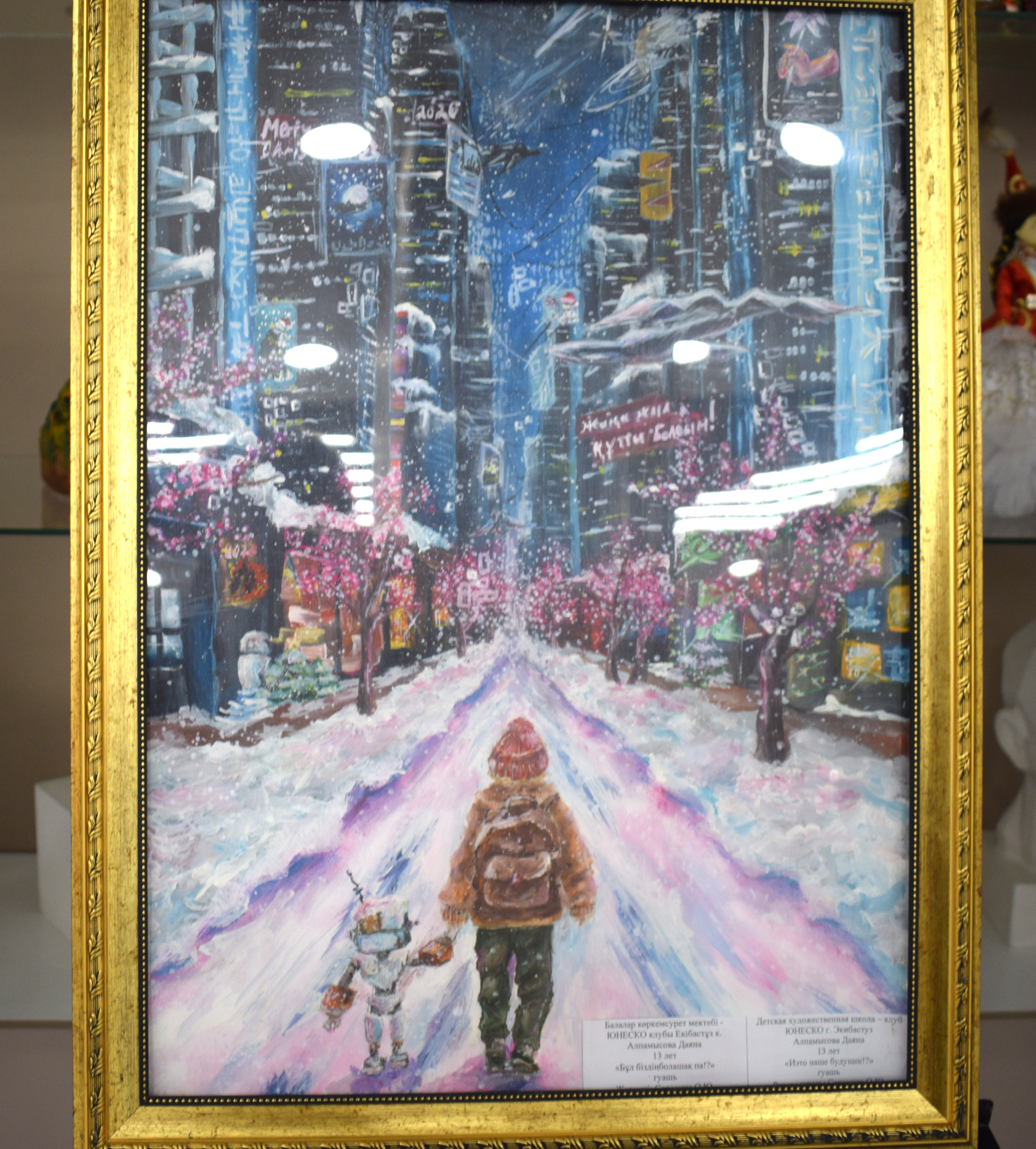 В этом сезоне на конкурс было представлено более 500 работ. Более пятисот маленьких миров, более пятисот попыток поговорить со взрослым миром на языке цвета, линии, образа. На выставке — зимние города будущего, где по заснеженным улицам едут беспилотные машины; прозрачные цифровые купола над домами; роботы, похожие на снежинки; сказочные тулпары, соединяющие в себе силу мифа и эстетику технологий; сцены из истории Экибастуза, увиденные детскими глазами; сюжеты, превращённые в живые картины. Будущее, соседствующее с памятью, технологии — с традициями, фантазии — с личным переживанием.