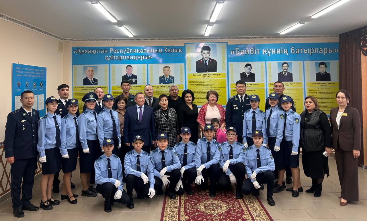 На базе школы также открыт специализированный учебный кабинет «Жас сақшы», предназначенный для проведения профильных занятий, практикумов и воспитательных мероприятий. Новое образовательное пространство ориентировано на формирование у подростков уважения к закону, дисциплины, ответственности и активной гражданской позиции. В кадетский класс вошли учащиеся лицейных классов, проявляющие высокую учебную мотивацию, активное участие в общественной жизни и интерес к службе в правоохранительных органах. Программа подготовки включает элементы правового просвещения, начальной строевой и физической подготовки, основы служебной этики и профориентационные модули.