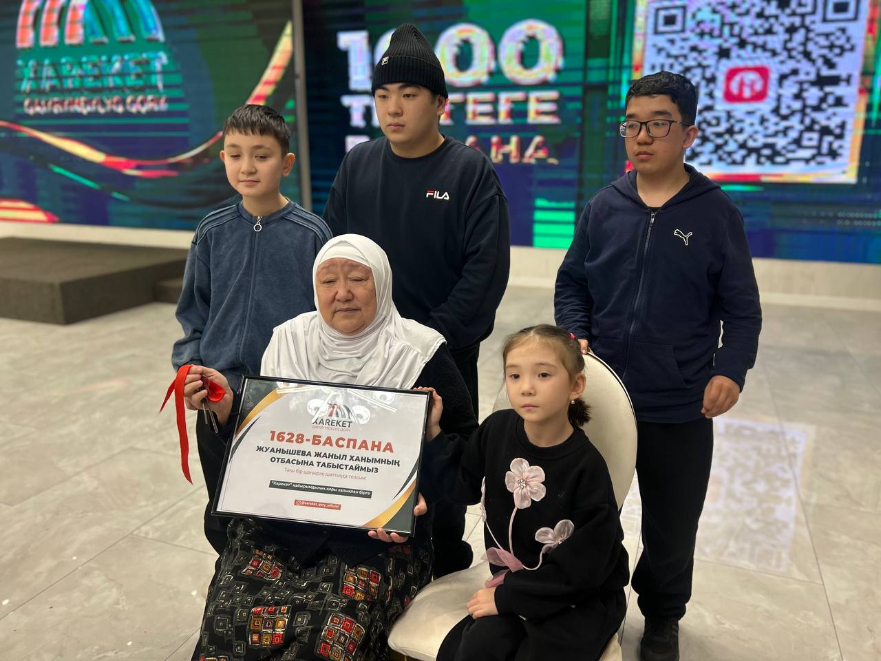 Ключи получила семья Жубанышевой Жаныл Кагазбайкызы. С 2013 года женщина потеряла зрение на правом глазу и сегодня является полностью незрячей. Несмотря на серьёзные испытания, она остаётся опорой для своих близких — у неё две дочери и шестеро внуков. Один из внучат — Асанали — инвалид детства и уже перенёс восемь операций.