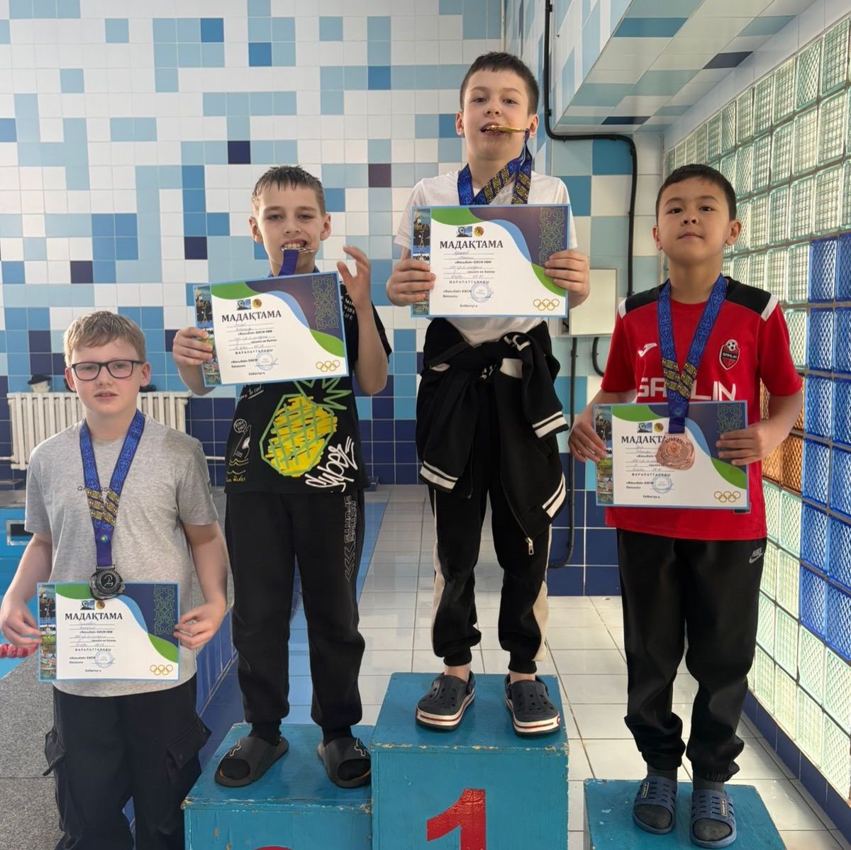 По итогам заплывов высшую ступень почета заняли: Мищенко М., Бибикова С., Дюйсембаев Р., Силуянов И., Зубарев Е., Бейсембаева Д., Жүсіп Н., Бейсембаева А., Латыголец Р., Советова А., Кабдрахман З., Габдулнасыров М., Григорьева М., Раевский Д., Иксанов Р., Тютюнова С., Крючков М., Ерахмет Д., Вяткин С., Захарова А., Забегаев Р., Даулеткельдинов Х., Исаков М.