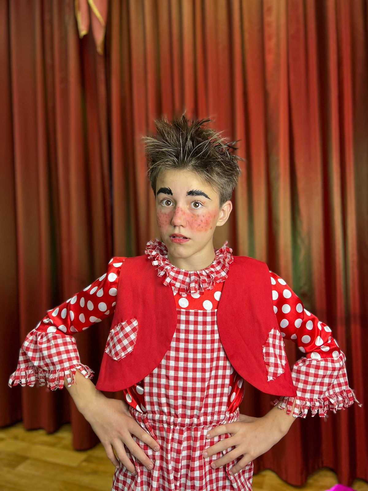 Одну из ключевых ролей в спектакле исполнил девятиклассник Мирослав Алдущенко. По словам руководителя, он очень точно почувствовал внутреннюю линию героя — человека, который надевает маски, чтобы спрятаться от себя и от других.
