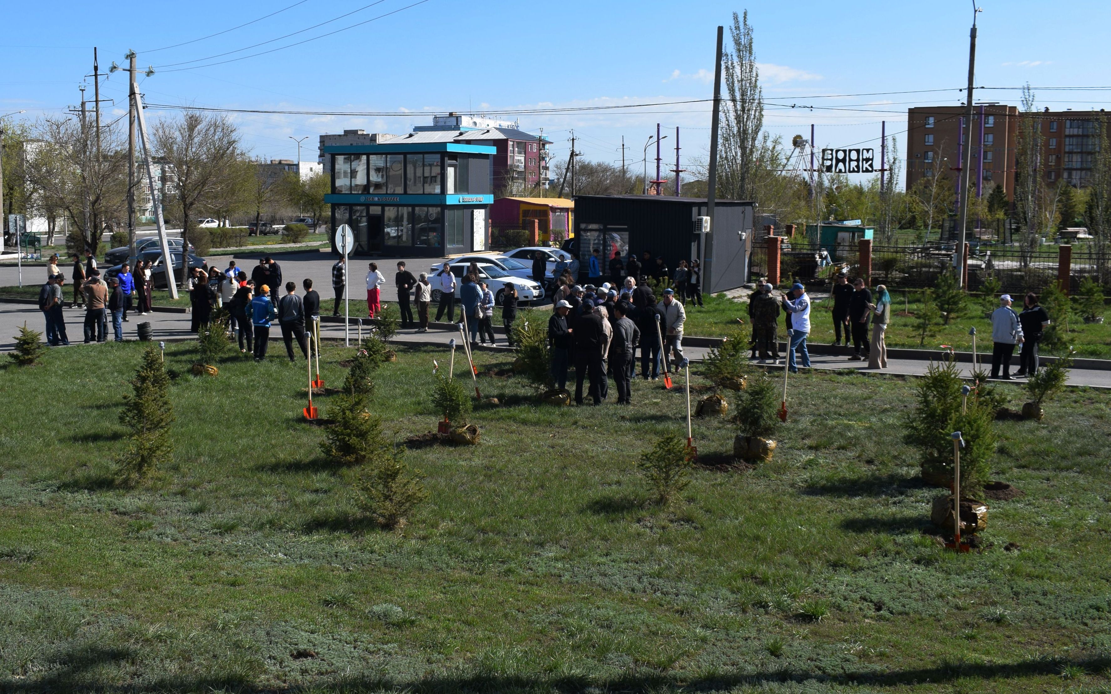 В Экибастузе стартовал сезон озеленения в рамках республиканской экологической акции «Таза Қазақстан». Первую масштабную посадку провели в сквере возле ГДК «Өнер», где высадили 57 хвойных саженцев — ели и сосны.